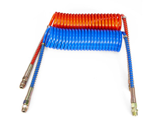 PA / PU Coil hose has smooth inner wall, fast air brake response, small pressure loss, abraion resistance, aging resistance, good flexibility, widely used in ir brake, automated machinery, coating machinery, all kinds of pneumatic tools, pneumatic & hydraulic machinery, construction and various pneumatic tools. it works at temprature from -40°C to 90°C.