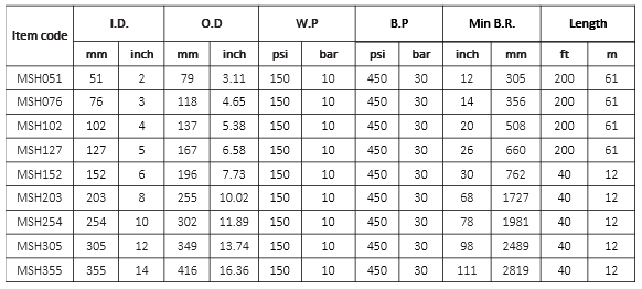 Reinforcement: Multi ply synthetic fabric with wire helix.